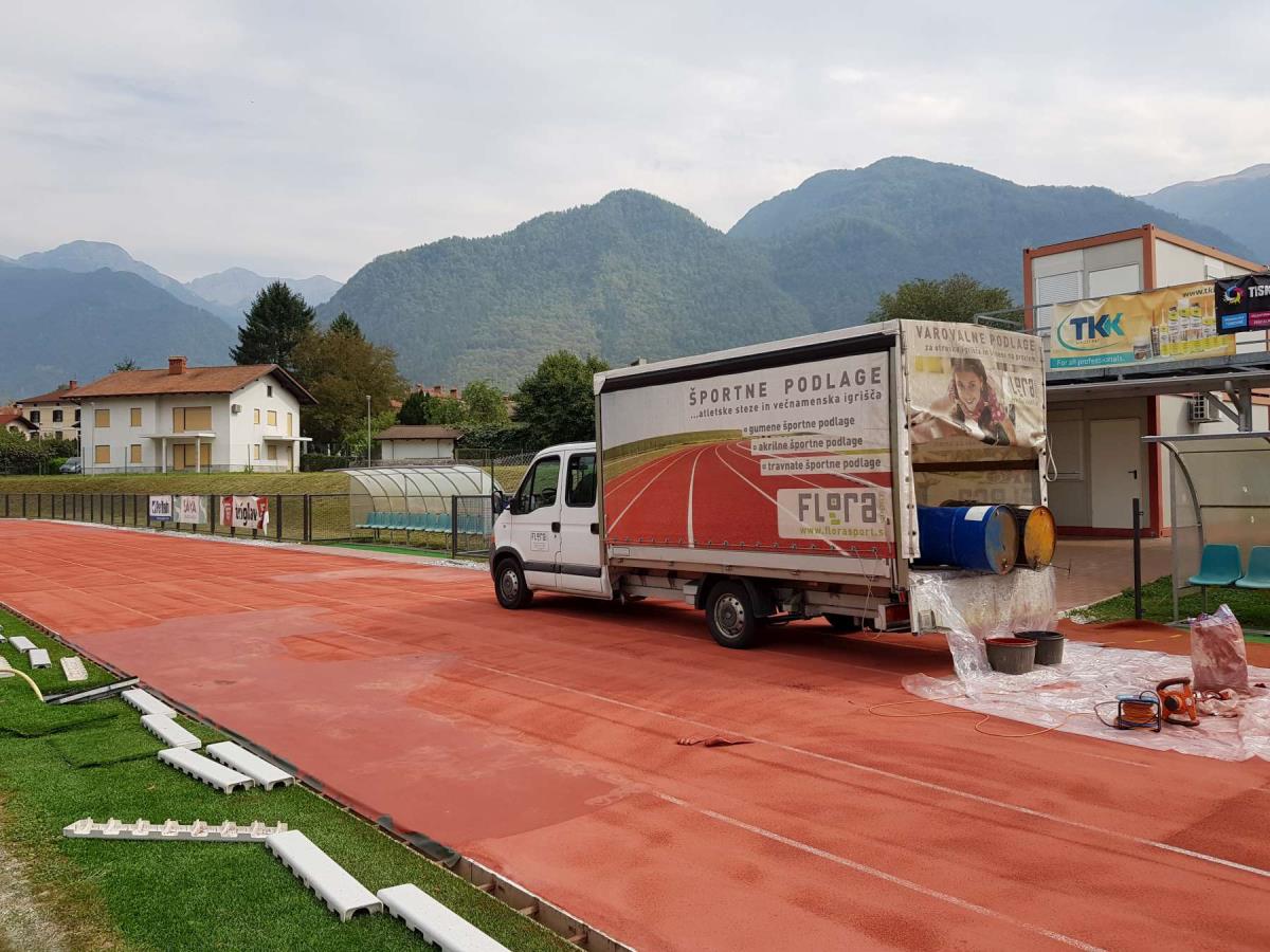 Le streljaj stran sanacijo atletske steze zadnji teden izvajajo delavci podjetja Flora sport d.o.o., ki zagotavljajo dokončanje do začetka novega šolskega leta. Občina Tolmin in Zavod za kulturo, šport in mladino Občine Tolmin sta izvajalca investicije o napakah na športni podlagi obvestila takoj po njihovem nastanku ter zahtevala sanacijo celotne tekalne površine na zahodnem delu stadiona. Kot je pojasnil direktor podjetja Matjaž Kumer, je tehnična napaka nastala zaradi slabih vremenskih razmer v času vgradnje zgornjega sloja atletske steze. »Za napako v celoti prevzemamo odgovornost in jo bomo odpravili v času garancijskega roka. Za nastalo situacijo se vam iskreno opravičujemo,« je še sporočil Kumer.