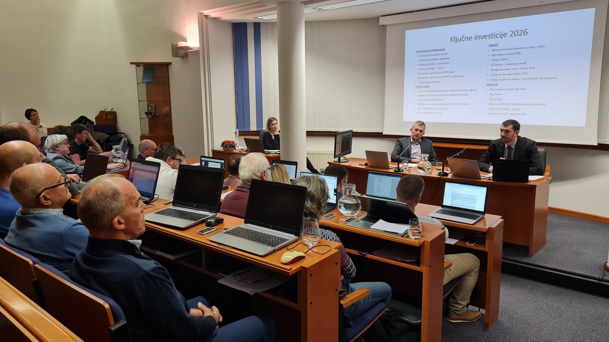 Po temeljiti razpravi, v kateri sta svetnikom na vprašanje in pobude odgovarjala župan Červ ter vodja oddelka za gospodarstvo, negospodarstvo in finance Janja Bičič, je bil predlog proračuna Občine Tolmin za leto 2026 v prvi obravnavi brez glasu proti sprejet. Druga obravnava bo sledila na decembrski seji.
