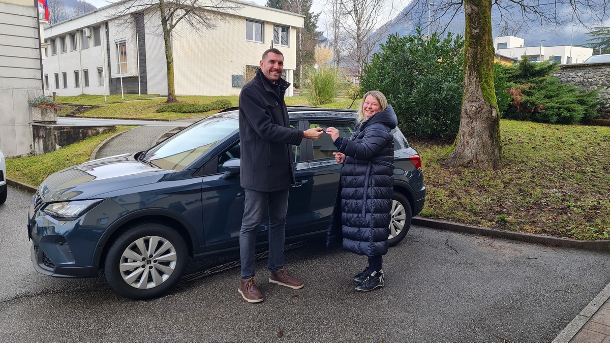 Novega vozila so se danes razveselili tudi v tolminski enoti Centra za socialno delo (CDS) Severna Primorska. Tamkajšnje oskrbovalke ga bodo uporabljale za izvajanje programa pomoč na domu. Na območju občine Tolmin je uporabnikov teh storitev 55–60 mesečno in na letni ravni okoli 70, teren pa je razpršen in razdalje so dolge. Ključe nove Seat Arone je pomočnici direktorja CSD Severna Primorska mag. Kristini Šturm Leban predal župan Alen Červ, saj je 15.000 evrov za nabavo vozila v celoti zagotovila Občina Tolmin.