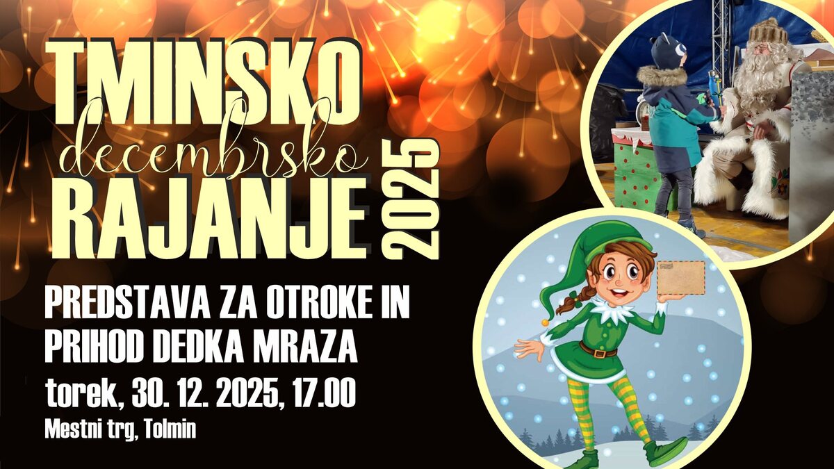 Obisk Dedka Mraza pred novim letom v Tolminu ne sme manjkati! Dedka Mraza bomo pričakali v torek, 30. decembra, ob 17.00 na Mestnem trgu pred Kinogledališčem. Njegov prihod bo pospremila predstava Praznična pisarna veselja, v kateri škratka Natka išče najboljše darilo na svetu.